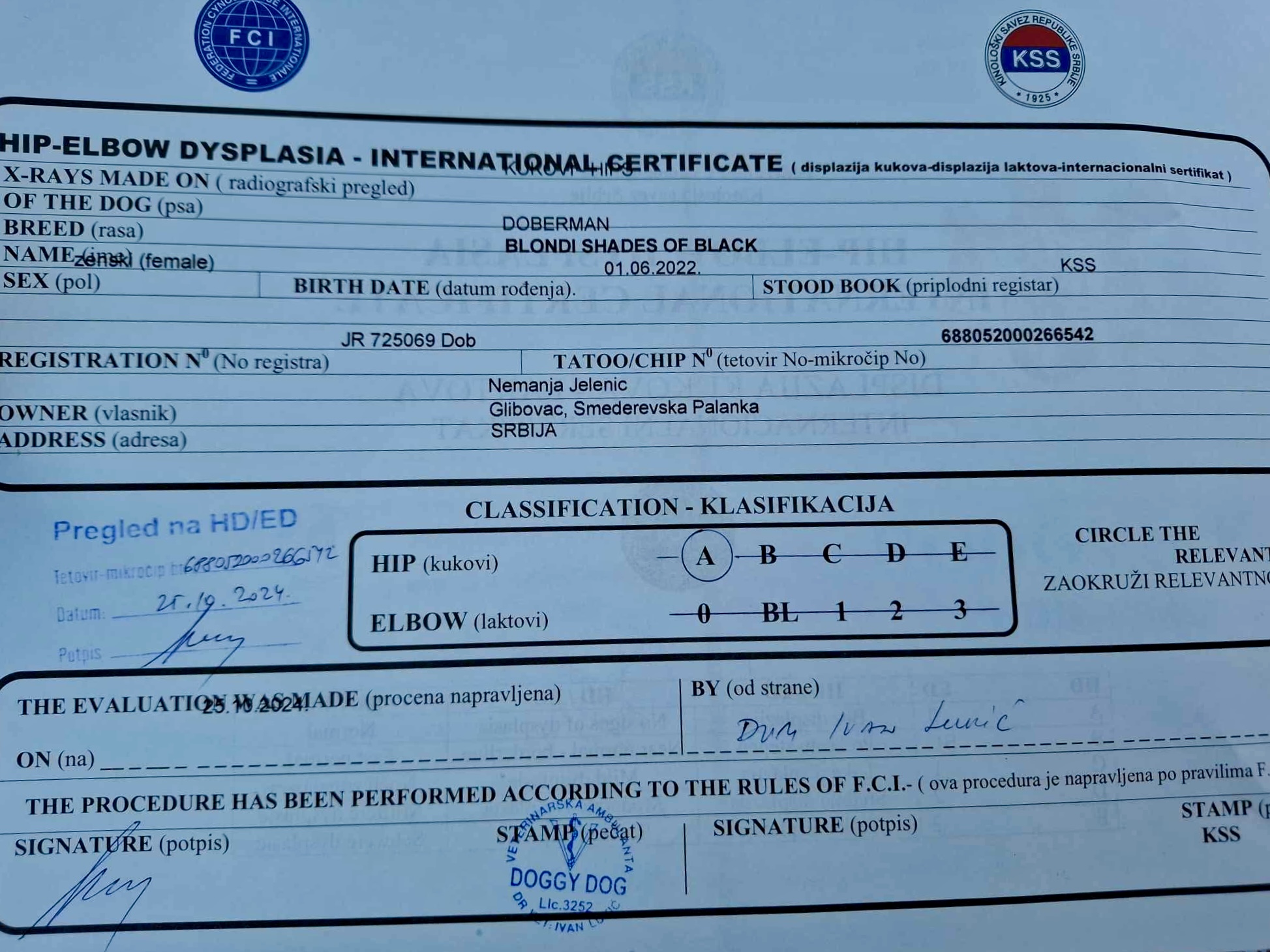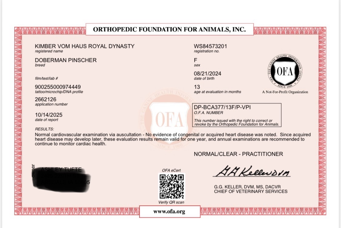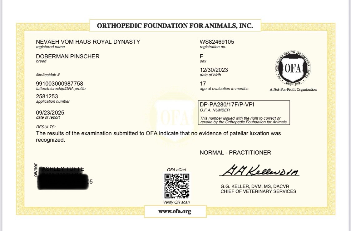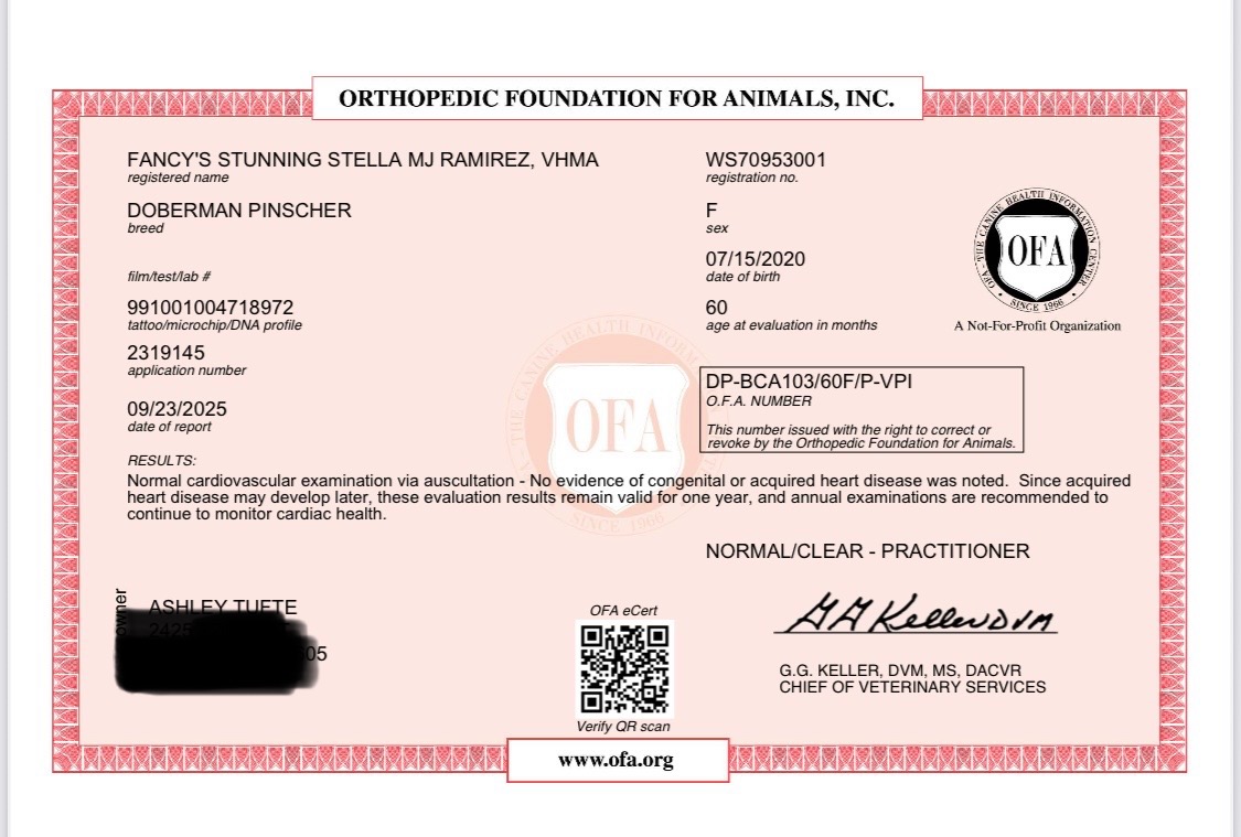 Stella is the first full European Dobermann that we got. She is just like her name, stunning! She has had one litter of puppies and has her VHM title and started protection training.