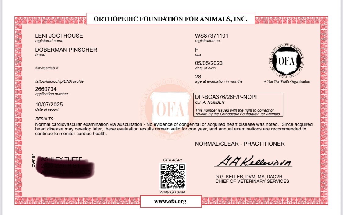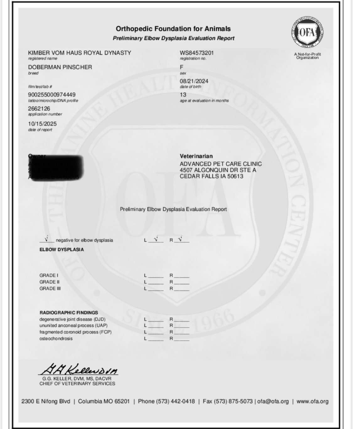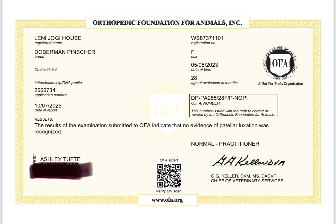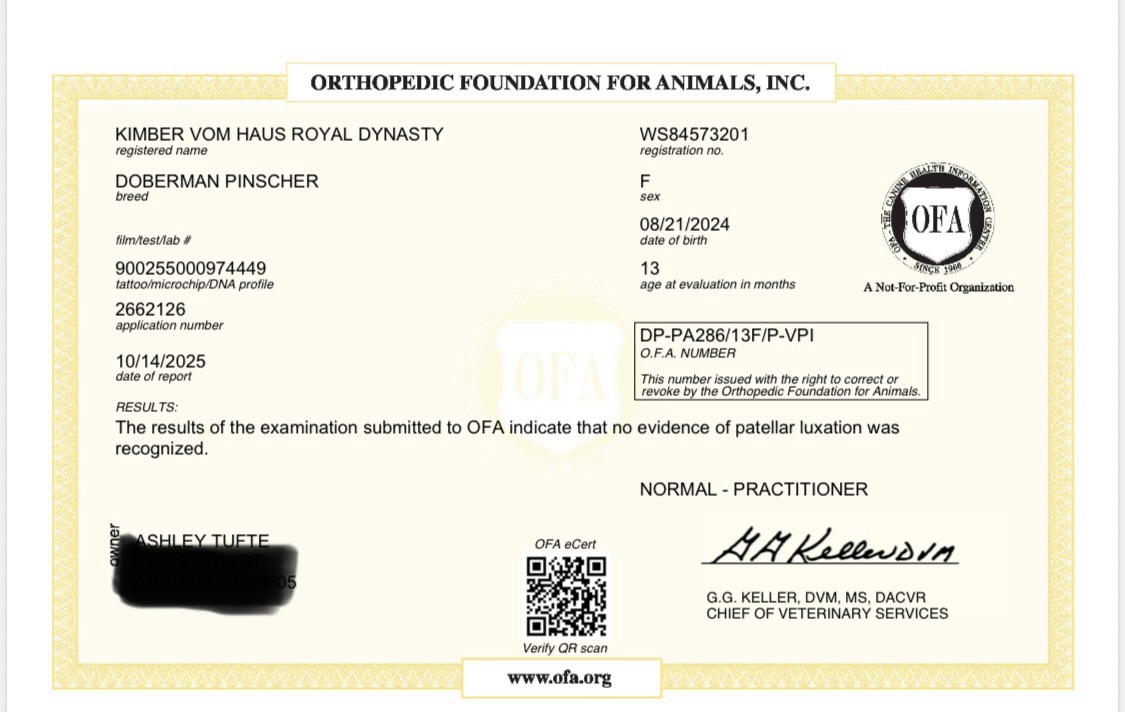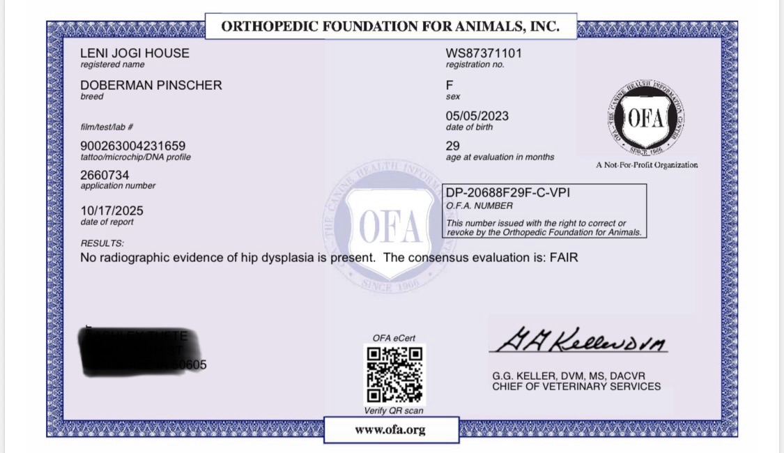 Stella is the first full European Dobermann that we got. She is just like her name, stunning! She has had one litter of puppies and has her VHM title and started protection training.